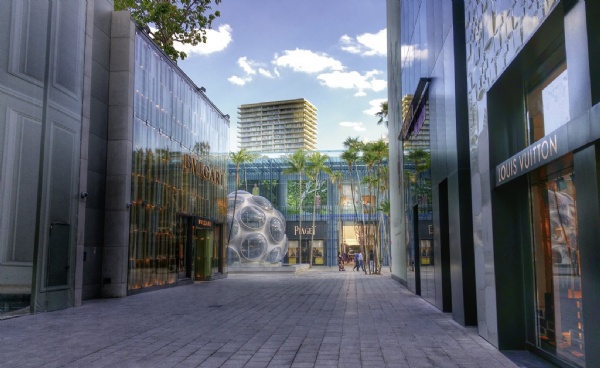 - Floating four-story podium with cascading waterfall on the Riverfront